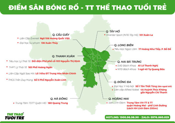 Thể Thao Tuổi Trẻ là Trung Tâm dạy bóng rổ có quy mô số học sinh, thầy cô, sân tập lớn và uy tín số 1 tại Hà Nội. Hiện tại trung tâm dạy học bóng rổ ở Hà Nội đã có hơn 50.000 học sinh, 100 huấn luyện viên, 30 sân học trên khắp quận huyện trên Hà Nội.